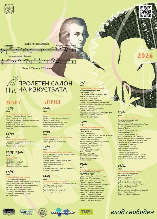 Варна отново ще се превърне в сцена на музика, литература и изобразително изкуство с традиционния Пролетен салон на изкуствата, който ще се проведе от 14 март до 26 април 2026 г. В продължение на повече от месец публиката ще има възможност да се наслади на богата програма от концерти, изложби […]