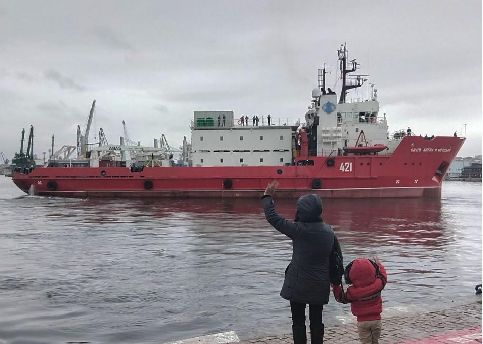 Научноизследователският кораб „Св. св. Кирил и Методий" беше изпратен с тържествена церемония на четвъртата си антарктическа експедиция